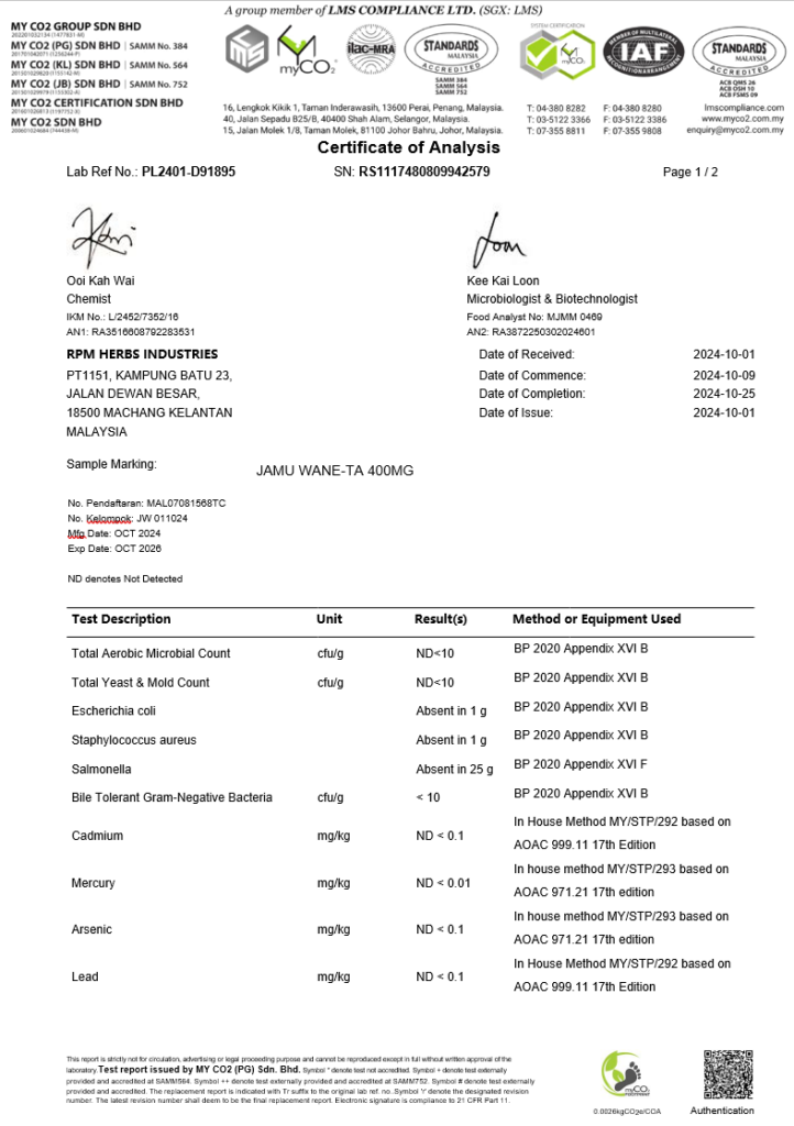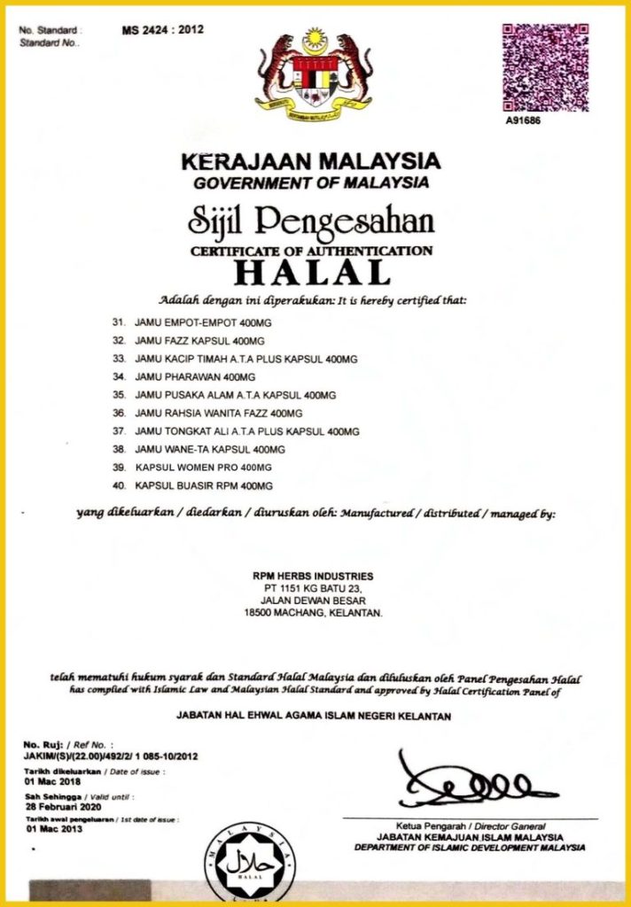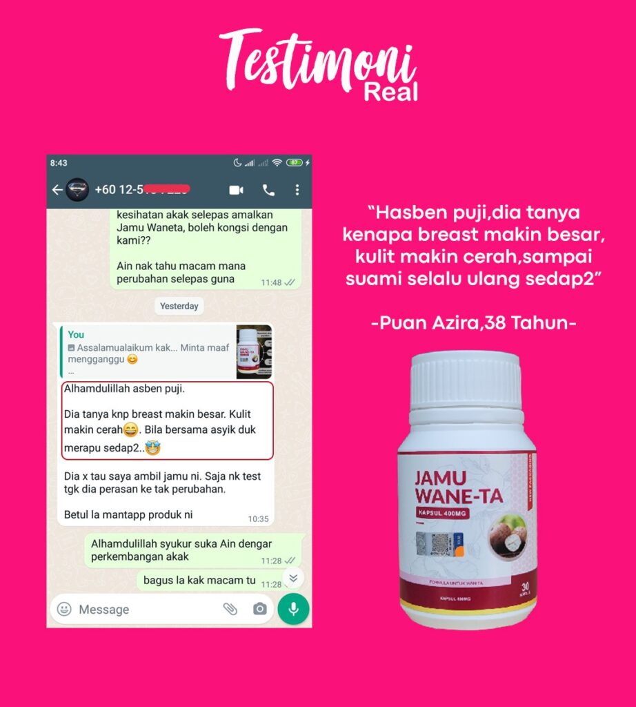 In shaa Allah selamat dan berkesan untuk atasi masalah puan. Jamu Waneta telah pun diluluskan KKM.